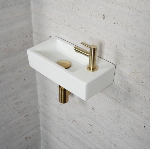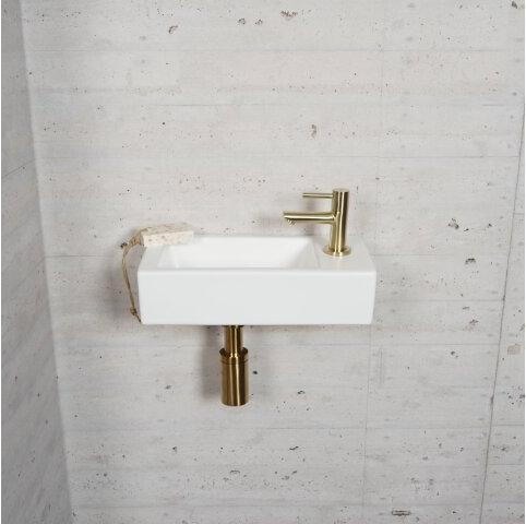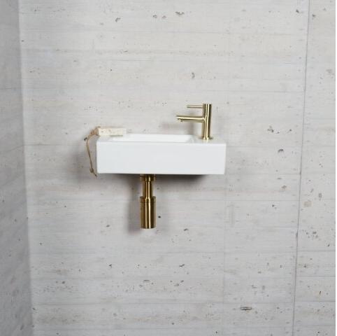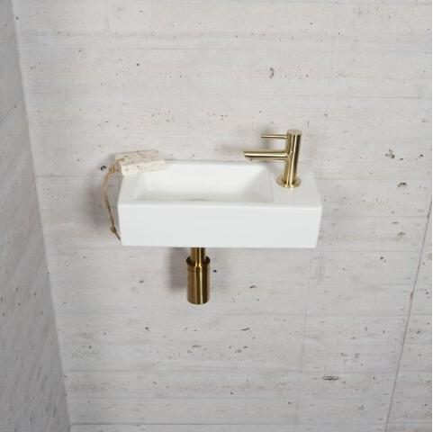 Mat Wit Fonteinset Wiesbaden Kleur Messing Goud (Kraangat Rechts)