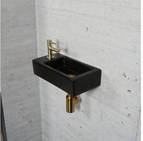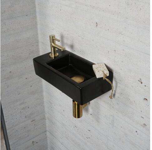 Mat Zwart Fonteinset Wiesbaden Kleur Messing Goud (Kraangat Links)