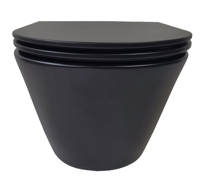 Stereo randloos wandtoilet Wiesbaden in matzwart met Flatline Soft Close en Quick Release toiletbril in matzwart