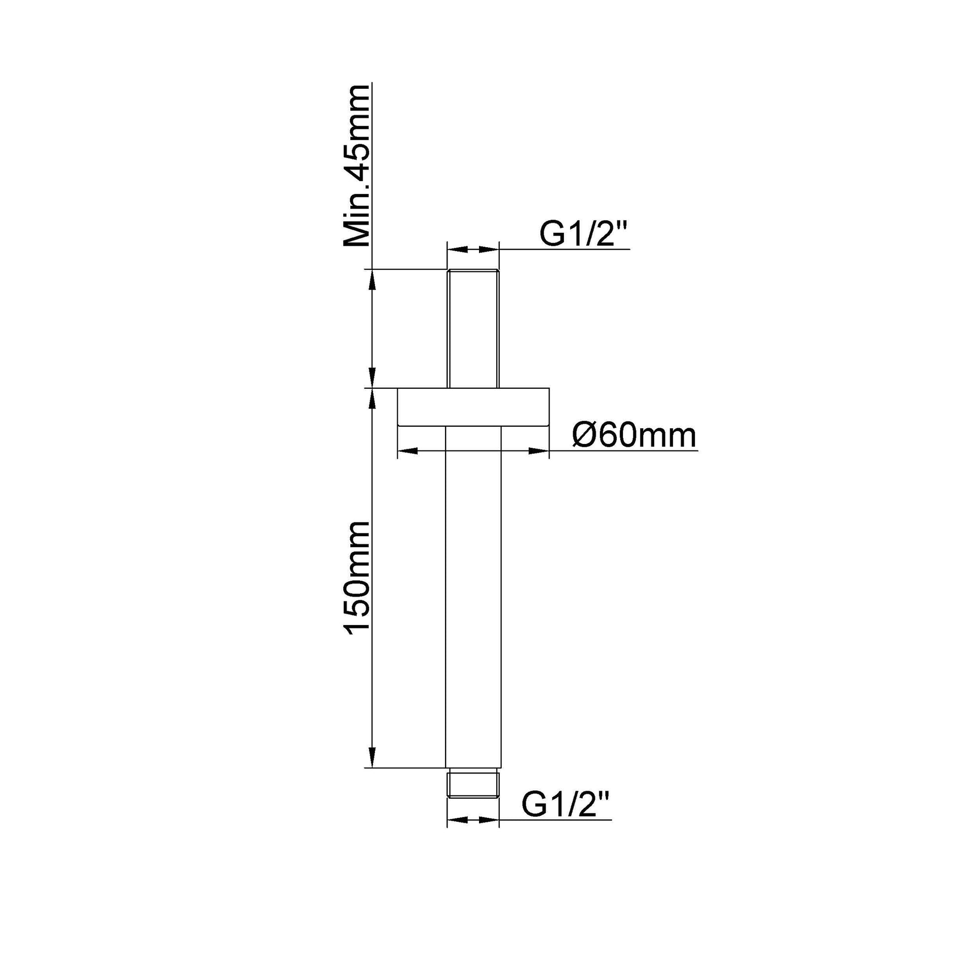 UniMatch douchearm met plafondbevestiging 15 cm geborsteld messing PVD