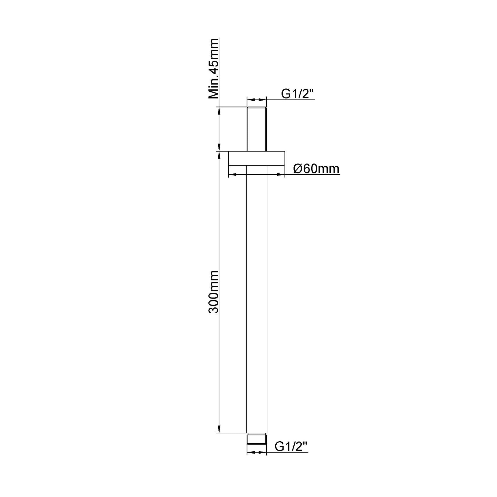 UniMatch douchearm met plafondbevestiging 30 cm geborsteld messing PVD
