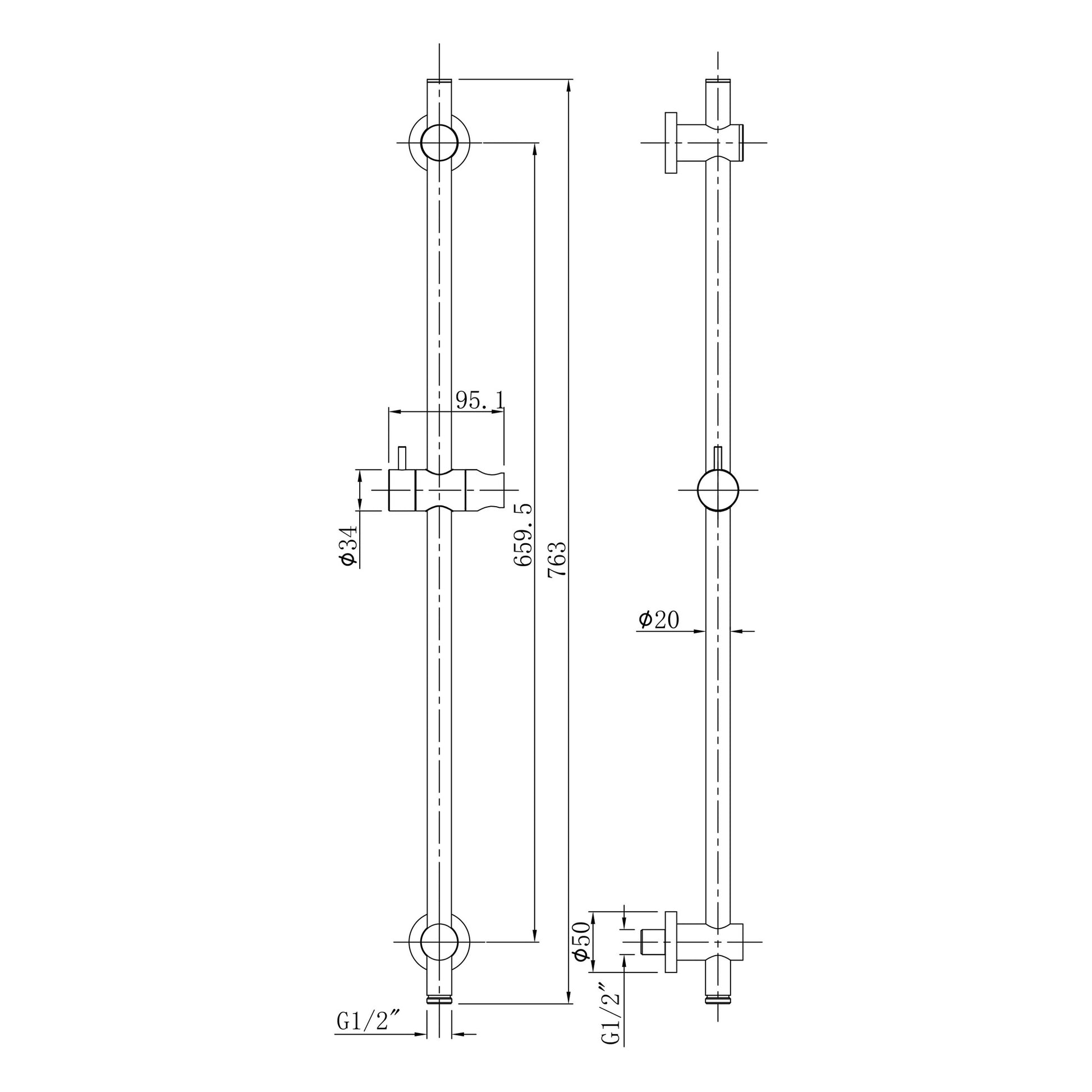 UniMatch glijstang met wateraansluiting 76,5 cm chroom