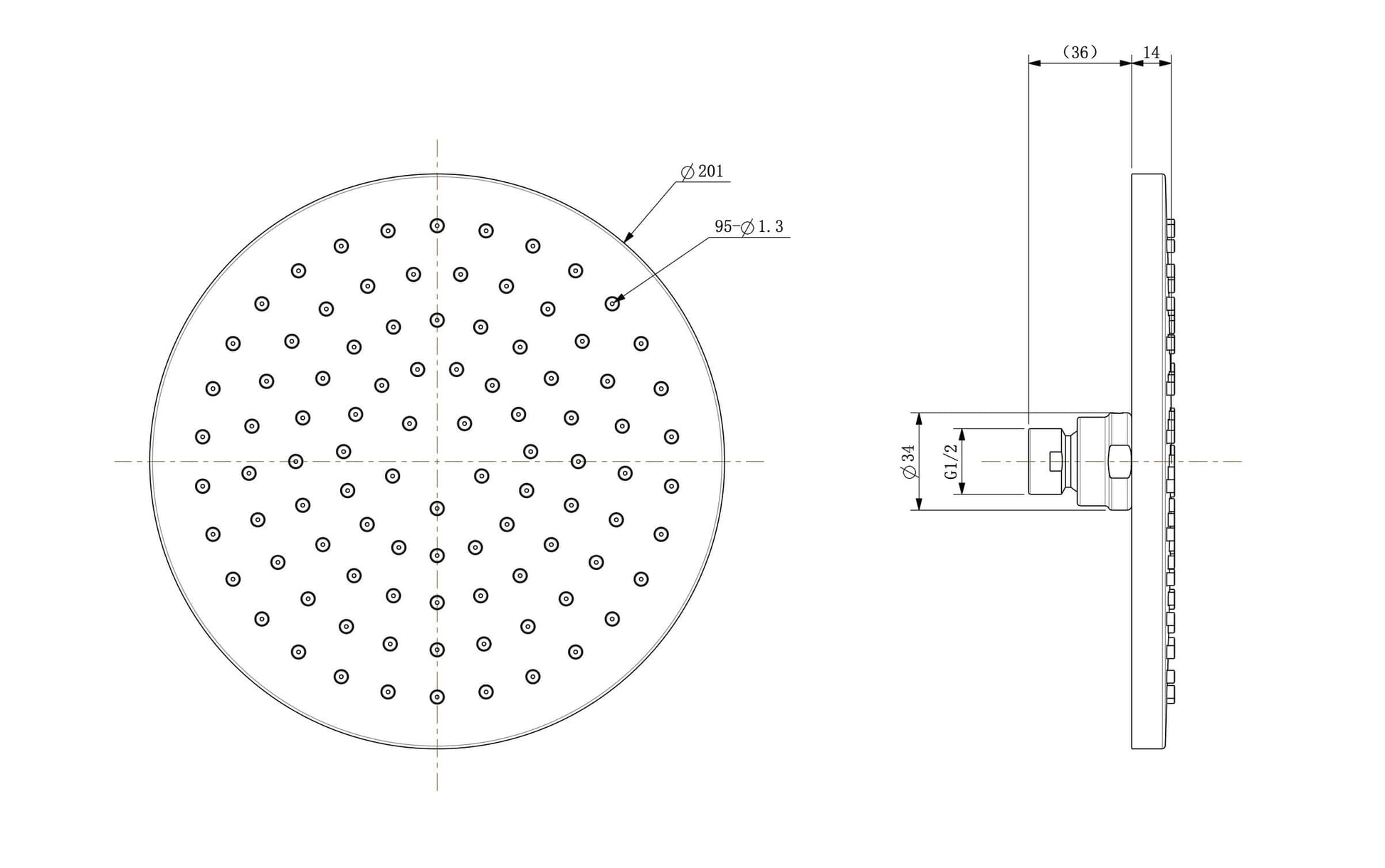 UniMatch hoofddouche rond 20 x 1,2 cm chroom