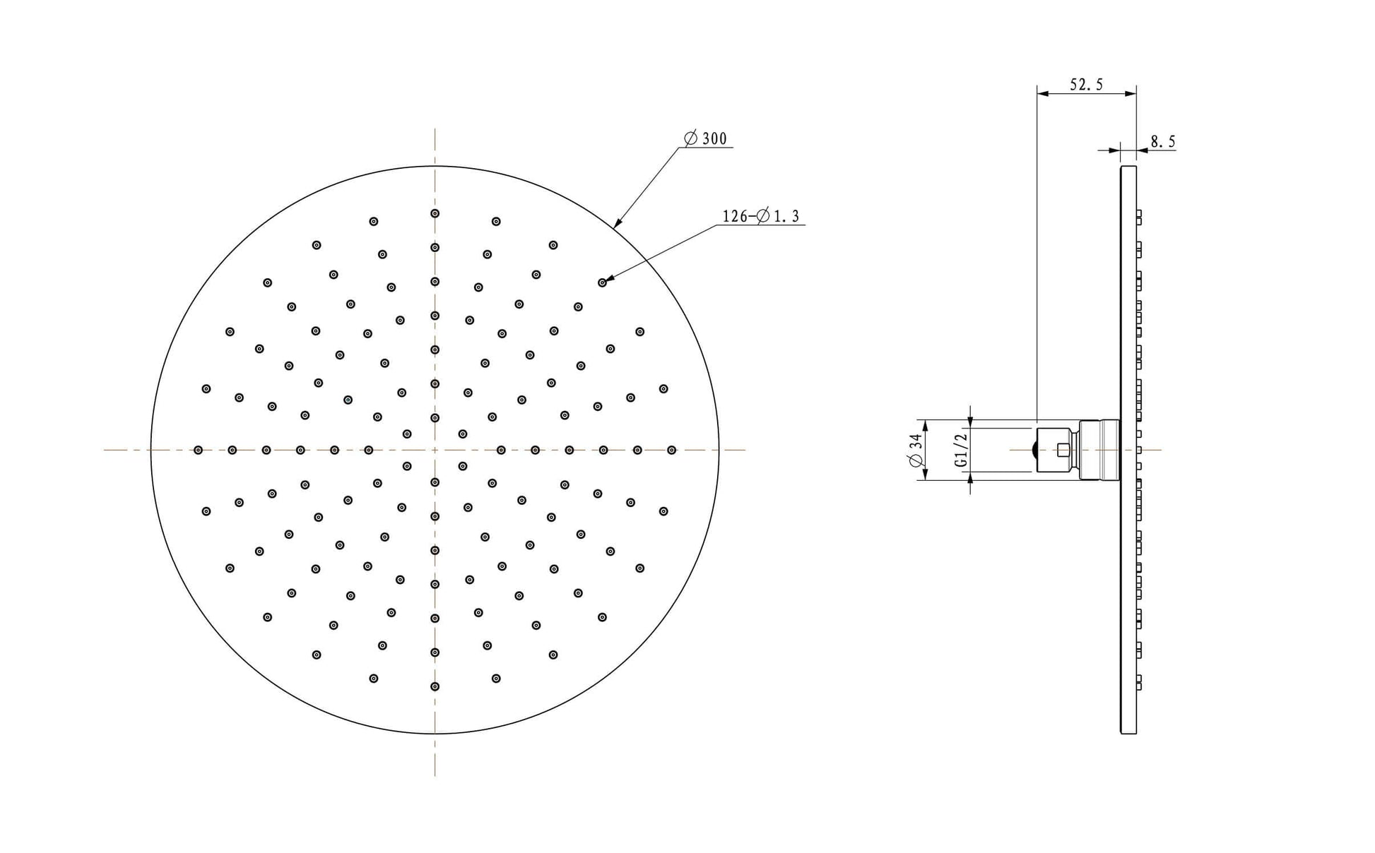 UniMatch hoofddouche rond 30 x 0,8 cm mat zwart