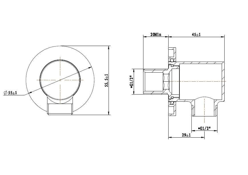 UniMatch wandaansluitbocht rond 1/2" geborsteld koper