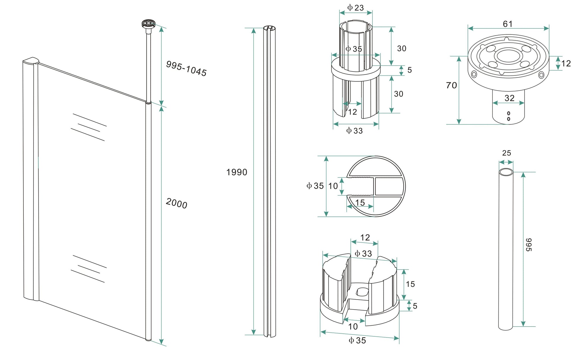 Verticale stabilisatiebalk met plafondmontage, chroom voor 10 mm glas, Wiesbaden