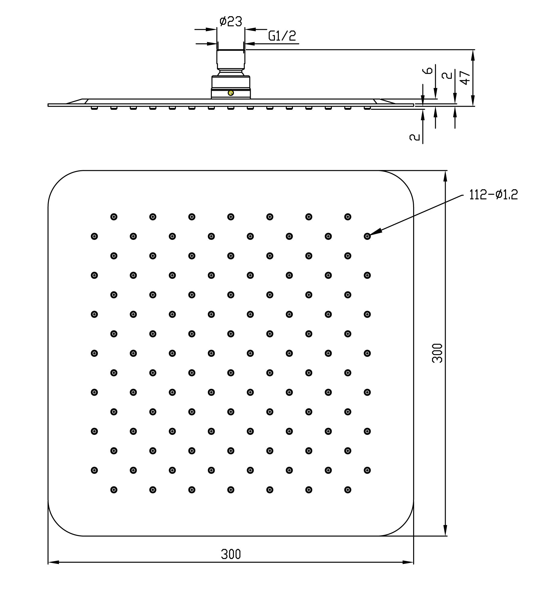 Specificaties Hoofddouche Wiesbaden Rombo UFO Vierkant 30cmm Ultra plat RVS Look