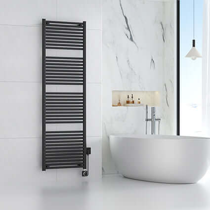 Bent u op zoek naar een elektrische radiator voor uw badkamer? Dan is deze Wiesbaden radiator uit de Elara lijn ideaal voor jou. De radiator is 181,7 cm lang en 60 cm breed. De voedingskabel heeft een lengte van 120 cm. De aansluiting bevindt zich aan de rechterzijde onderin de radiator, met een vermogen van 1000 Watt. De radiator heeft een IPX4-rating, wat aangeeft dat hij bestand is tegen spatten. De radiator beschikt over intelligente WiFi, waardoor bediening via een mobiele applicatie mogelijk is. Deze werkwijze zorgt voor een aangenaam warme badkamer bij binnenkomst. Deze radiator is voorzien van een digitale thermostaat met Eco-, Timer-, Comfort- en Boost-functies. Deze radiator wordt geleverd met een ophangset en montagemateriaal. De vorm en kleur van deze radiator passen bij elke moderne badkamer.