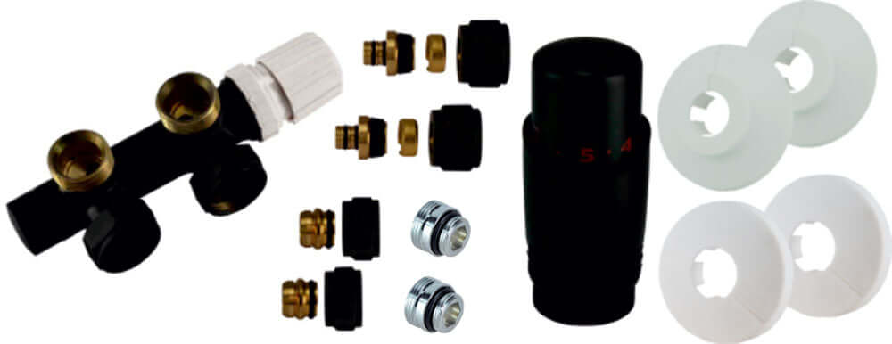 Het metaal is matzwart en past op alle designradiatoren met middenaansluiting. De aansluitset heeft een rechthoekige vorm, waardoor directe bevestiging aan de muur mogelijk is.