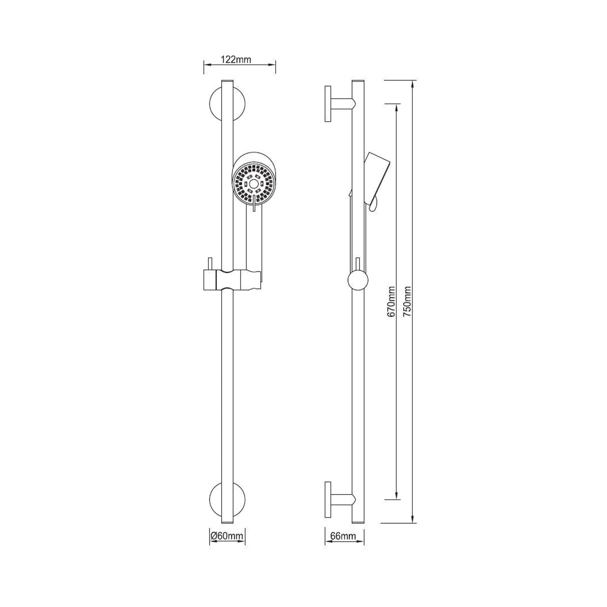 UniMatch Cadans glijstangset compleet met handdouche 3 standen Ø 8 cm gunmetal PVD